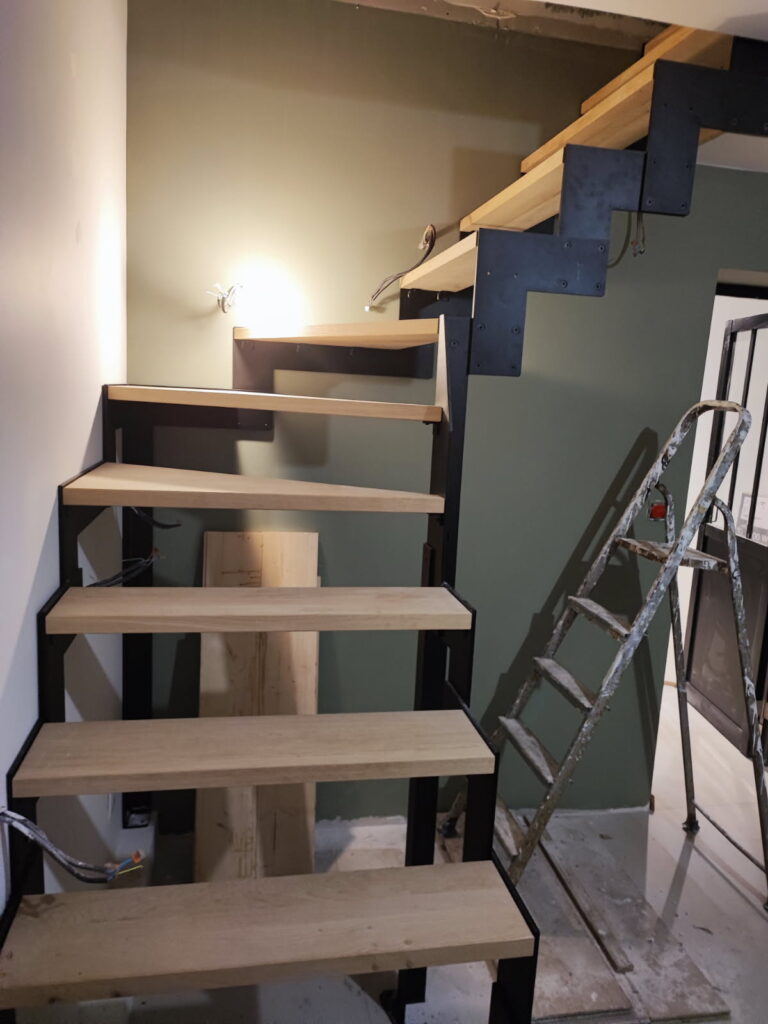 Notre équipe est intervenue chez ce client à Mérignac dans le cadre d’une surélévation de maison et du coup dans notre cas ici, avec la pose d’un escalier sur mesure en métal et en bois.